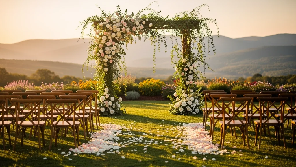 Arches that frame your vows, altar arrangements that set the mood, aisle markers that guide your path — every bloom placed with intention.